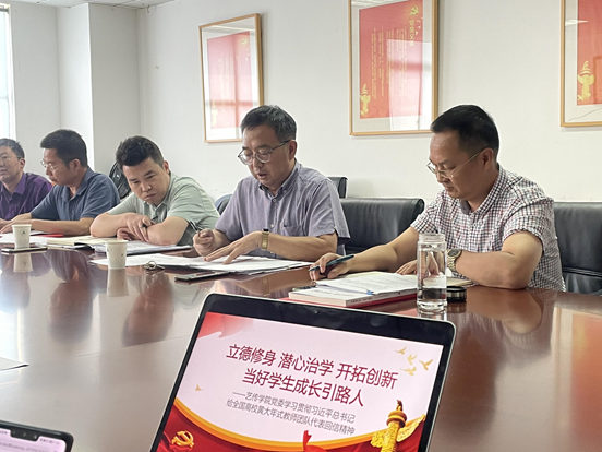 为深入学习贯彻习近平总书记给全国高校黄大年式教师团队代表回信精神,9月29日下午,艺术与传播学院党委召开题为“立德修身潜心治学开拓创新 当好学生成长引路人”的二级理论中心组专题学习会,专题学习习近平总书记给全国高校黄大年式教师团队代表回信精神。会议邀请我校教育部首批全国高校黄大年式教师团队——生物计量与检验检疫教师团队负责人俞晓平副校长莅临辅导和上党课。学院党政领导、党委委员、纪委委员、系主任、支部书记、党政办公室主任、近三年来校的青年博士以及纪检监察室相关同志参加学习会。会议由学院党委书记张健主持。