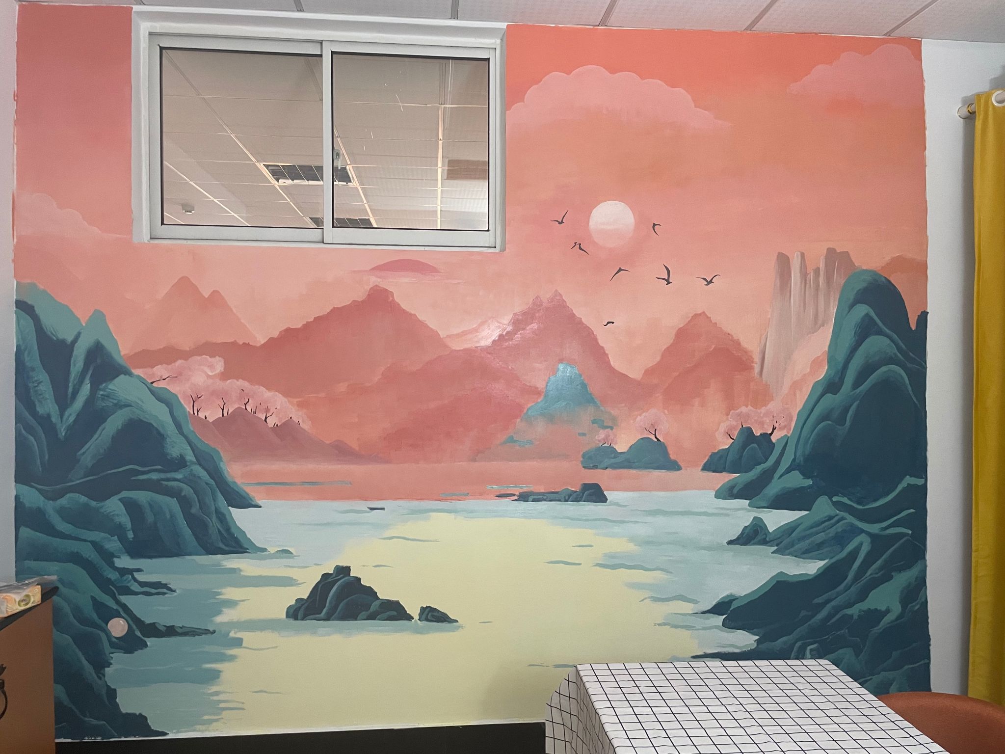10月上旬,艺传学院以“舒悦心坊”为主题,面向全院学子征集绘制作品。本次活动反响热烈,同学们发挥专业特长,积极参与投稿。本次活动收集到的众多色彩斑斓的绘画作品,经过学院老师、同学投票,选出了一副优胜作品,并邀请我院21级环境设计专业同学亲手绘制在广宇C405的墙面上。为“舒悦心坊”增添了一抹色彩,画作也让进入“舒悦心坊”的同学们感受到了生命的闪光之处。