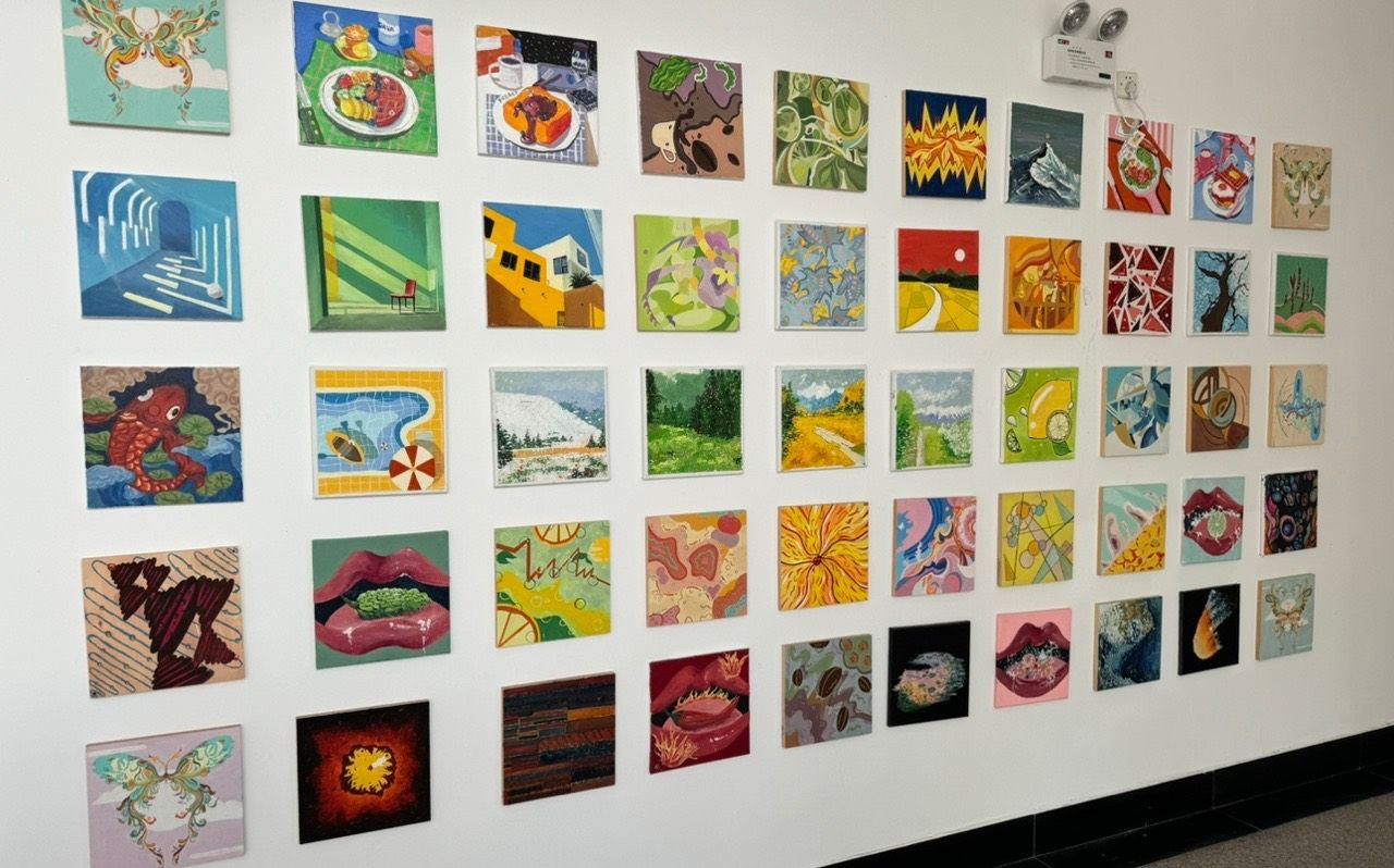 2024年5月至6月期间,艺传学院以“展艺传风采,传暖心力量”为主题向同学们征集了近百幅作品,经学院教师、同学们共同探讨后挑选出50幅作品挂置于学院楼道与“舒悦心坊”心理健康工作站中进行展示,该楼道也是通往“舒悦心坊”的必经之路。