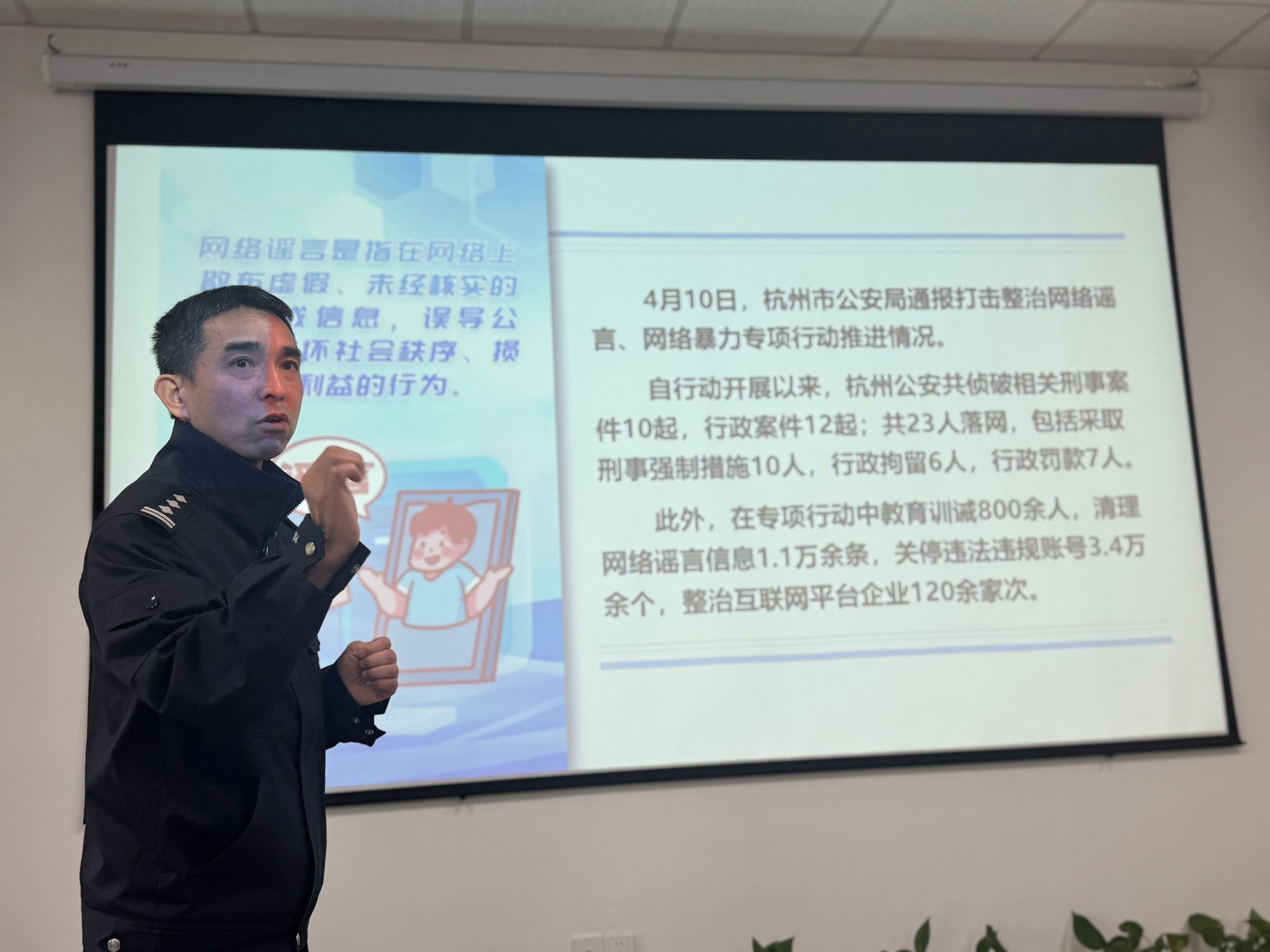 会上,白杨派出所黎警官结合近期下沙高校典型案例和自身工作经验,围绕电信反诈、寝室安全、心理安全、网络谣言、意识形态等方面,生动地进行了警示教育。安保部范国荣老师提醒师生绷紧安全弦,号召师生一旦发现安全隐患及时拨打校园24小时报警求助电话。学院党委副书记李莉介绍了学院目前安全教育与宣传的举措,呼吁学生骨干及时、有效传达安全知识,共同守牢校园安全防线。
