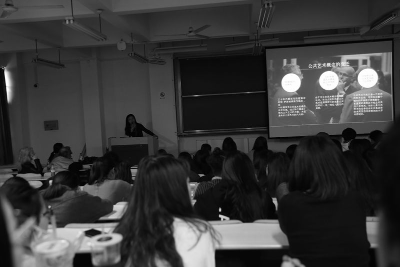 下午,刘凡教授就公共艺术对新媒介的设计运用和表现这方面,通过Art Basel HongKong中宫岛达男的《TIME WATERFALL》等大量国外非常优秀的尖端设计案例,展现了高科技对于公共艺术的影响及公共艺术未来巨大的发展前景,令在座的老师和学生们大开眼界。提问环节学生们较上一场讲座更为活跃,问题从专业学习中遇到的困难困惑谈到将面临的毕业就业等现实问题,刘凡教授凭借自身这些年在各国间的学习实践经历和艺术评论者、青年艺术家、国际策展人及高校教师这一特殊的身份,为每位同学及老师的提问都做了充分的解答,讲座圆满收场。