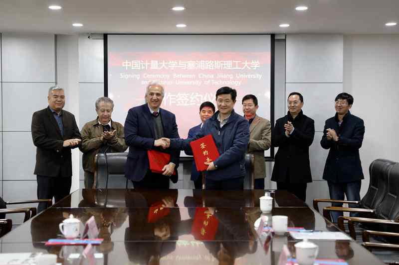 宋明顺热情欢迎塞方一行,与校长Andreas Anayiotos签订合作办学框架协议,并邀请塞方加入由我校发起的“一带一路”标准化教育与研究大学联盟。
