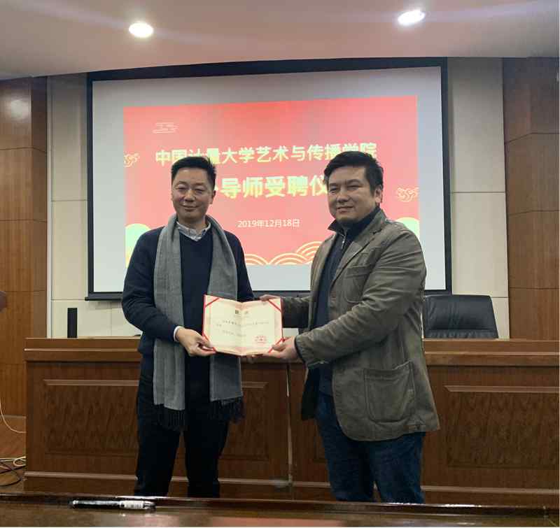 讲座结束,还举行了我校艺术与传播学院校外导师的受聘仪式,艺传学院副院长周晓江为李耀华总监颁发了受聘证书。