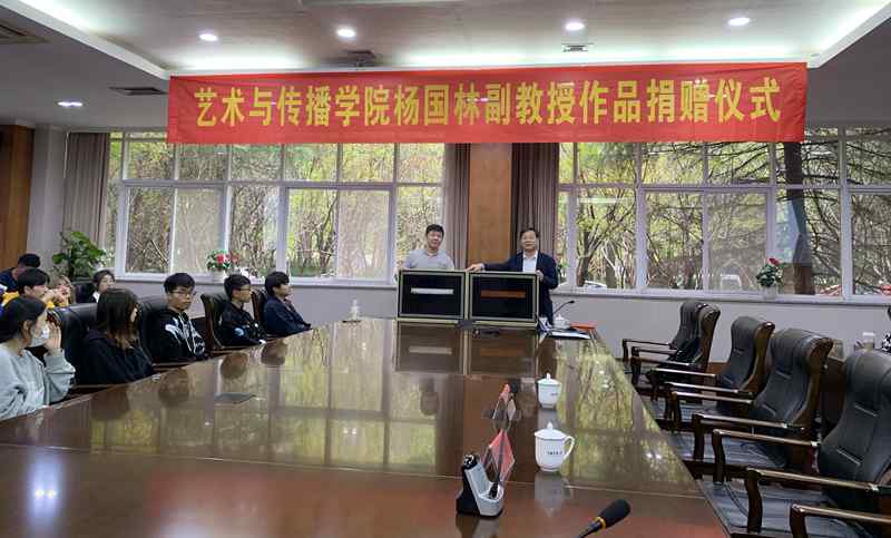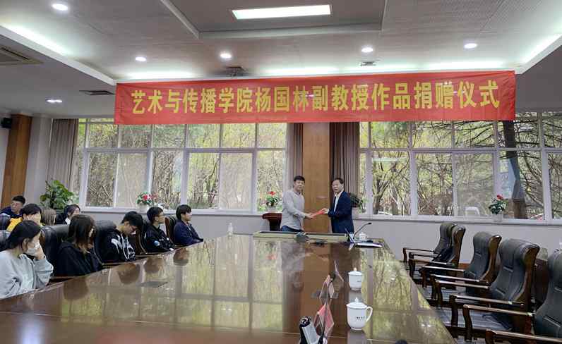 为了迎接中国计量大学42周年校庆,为校庆献礼,10月21日艺术与传播学院在闻厅一楼会议举行了杨国林副教授作品捐赠仪式,学校党委委员、纪委书记章建生为杨国林老师颁发了收藏证书,学院党委书记张健主持了会议,学院师生参加了捐赠仪式。