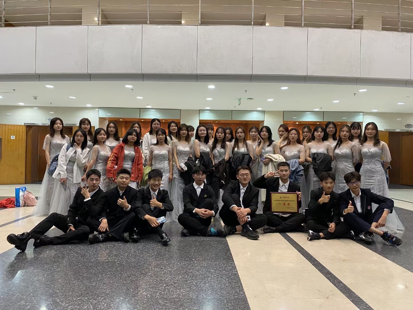 在本次比赛中,第八个上台的艺术与传播学院20级广告1班的同学作为学院代表,身着统一的服装、排着整齐的队列,以饱满的精神状态,热情高歌新时代,在嘉量的舞台上用独具创意的展示方式精彩演绎了校歌以及自选曲目《半个月亮爬上来》。经过13个学院入围决赛的13个新生班级紧张激烈的角逐,最终,我院20级广告1班斩获2020级新生合唱比赛一等奖。