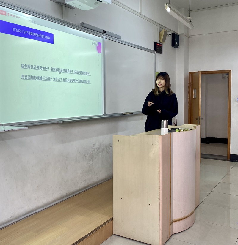 分享会后,同学们积极提问请教相关问题,周韦玮热情地解答了设计类专业学生就业和出国留学相关的疑惑,使同学们对交互设计、学业深造及择业等有了清晰的认知。作为省一流专业中一门体现艺科融合的特色课程,交互设计课程团队还多次参加我校课程思政竞赛获奖,这种形式能够有效地激发学生的学习热情,保证了学习效果,是学院、工设专业重点推动的一项教学改革方式。