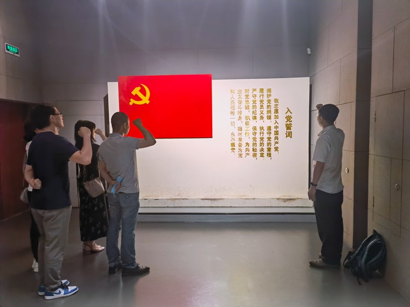 参观结束后,党员们倍受鼓舞,齐聚革命事迹墙前重温入党誓词。