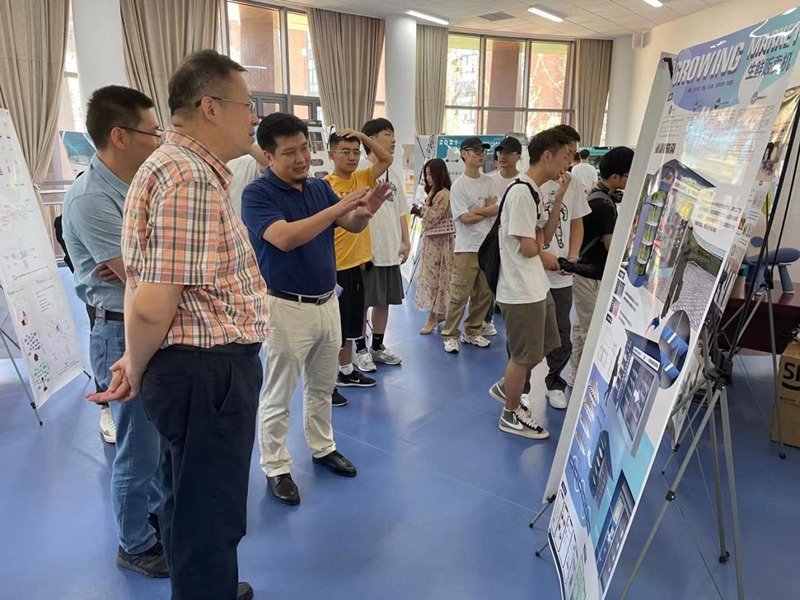校党委副书记程刚教授,校党委委员、研究生院院长、现代科技学院党委书记张勇教授,现代科技学院院长易荣华教授,研究生院副院长、现代科技学院党委副书记黄建湖,现代科技学院副院长陈志庆,中国计量大学现代科技学院原党委书记傅洪健等领导,在艺术与传播学院副院长周晓江陪同下参观了展览。在参观过程中,领导们与研究生们进行了深入的交流,对同学们的设计作品提出了宝贵的意见和建议,对展览的成功举办给予了高度评价。