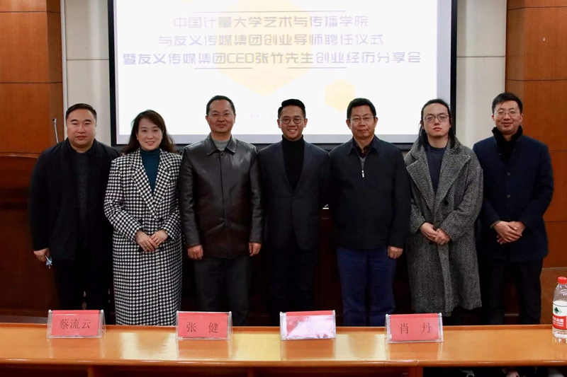 为进一步强化人才培养工作与师资力量建设,提升创新创业教育水平,艺术与传播学院近日聘任杭州友义传媒集团董事长张竹先生为我校大学生创业导师,并于12月1日在T301举办聘任仪式,邀请杭州友义传媒集团一行再次来访举办创业专题讲座。董事长张竹、CBO蔡流云、学院主要领导、数字媒体艺术系主任肖丹、影视专业方向负责人宁明渊及近150名学生等参加。