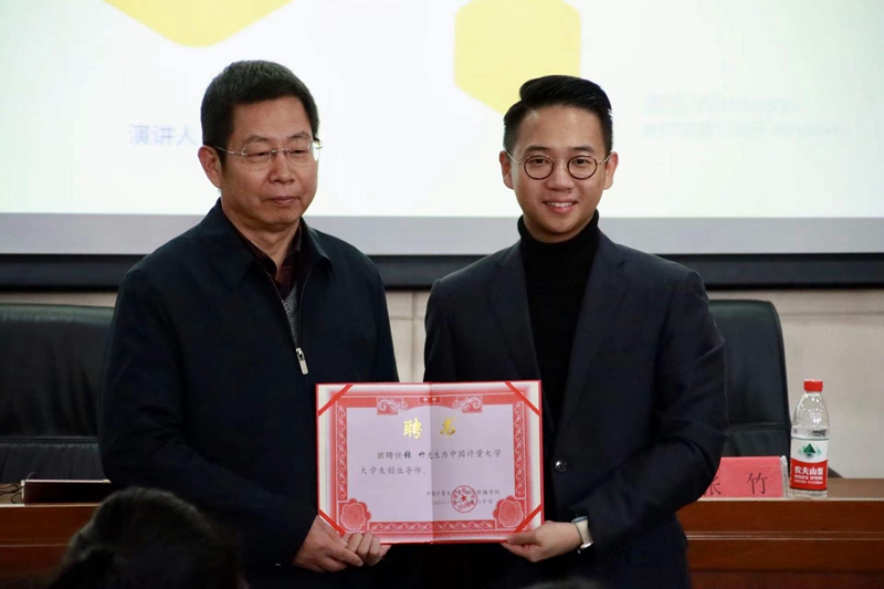 聘任仪式后,曾作为TED中国演讲人的董事长张竹也为师生们带来了一场主题为“创业经历分享”的精彩的讲座,这是他第二次来校做演讲,非常肯定我校传媒类专业学生的优秀素质,并生动全面地介绍了自己的创业历程和经验,鼓励和启发同学认真学习储备知识、洞察行业趋势、抓住就业和创业机会实现梦想。CBO蔡流云还在现场介绍了友义传媒的招聘需求。