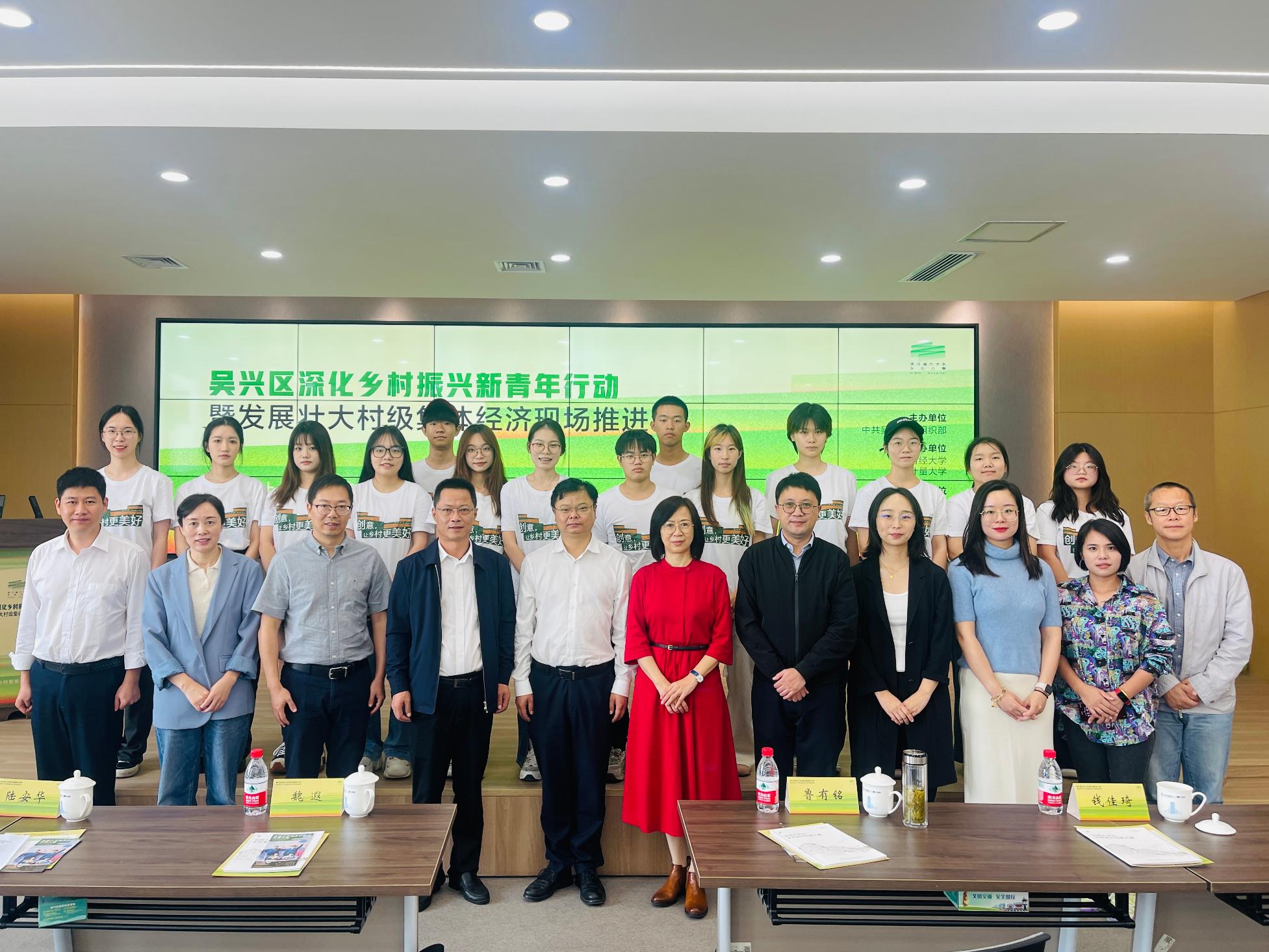 10月28日,由我校艺术与传播学院发起、筹办的浙江省大学生乡村振兴创意大赛吴兴区文化赋能专项赛在湖州市吴兴区东林镇东华村隆重举行决赛训练营。开营仪式上,百名师生接旗出征,开启吴兴乡创之旅。本次训练营与吴兴区深化乡村振兴新青年行动暨发展壮大村级集体经济现场推进会联动,参加人员有吴兴区委常委、组织部长鲁有铭,吴兴区副区长陆安华,吴兴区组织部副部长邱聪颖,吴兴区组织部专职人才办主任周斌,浙江省大学生乡村振兴创意大赛秘书长魏遐、副秘书长黄金树,吴兴区有关镇街、部门、国企分管领导,大赛特聘专家、入围决赛的师生团队等共150余人。艺传学院党委书记钱佳琦为学生代表授旗,副院长左冕介绍了吴兴专项赛的目标与训练营安排。