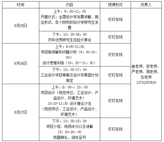2020年设计学公益研究生暑期夏令营活动安排表