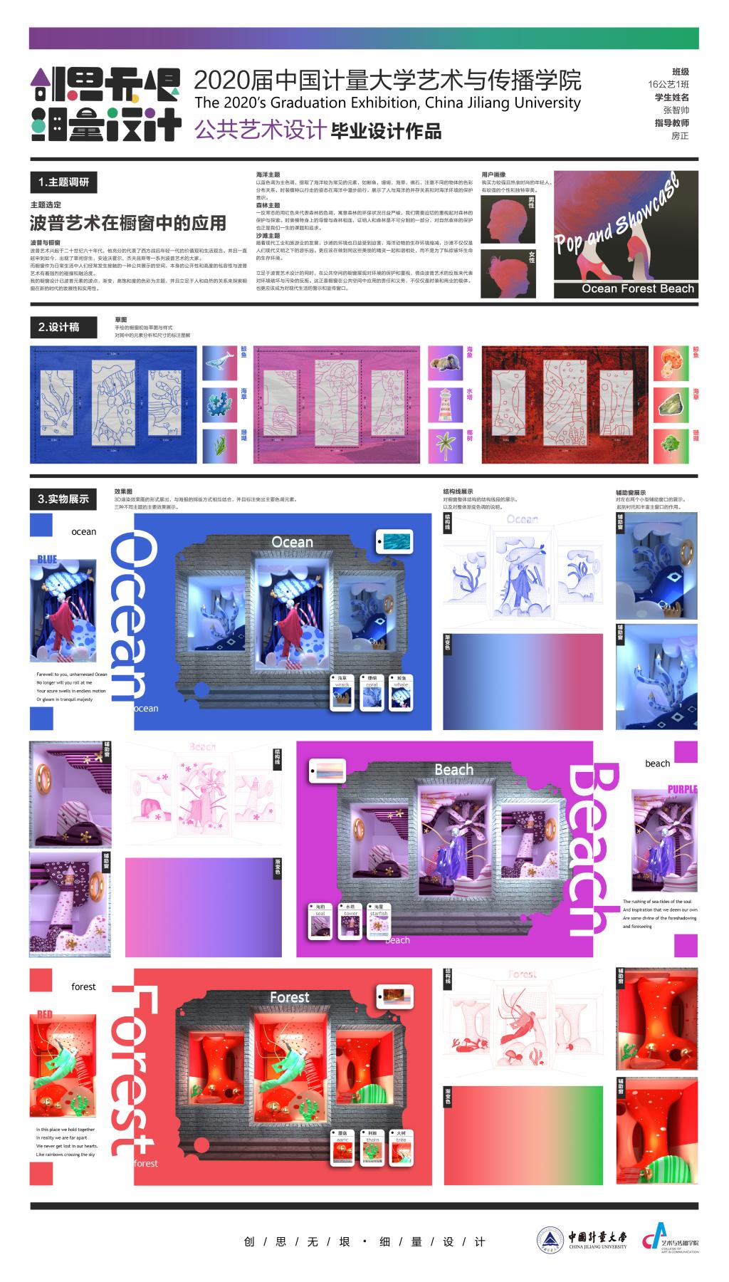 设计理念:橱窗作为日常生活中人们经常发生接触的一种公共展示的空间,本身的公开性和高度的包容性与波普艺术有着强烈的碰撞和融洽度。立足于波普艺术设计的同时,通过公共空间的橱窗展现对环境的保护和重视,借由波普艺术的反派来代表对环境破坏与污染的反叛。这正是橱窗在公共空间中应用的责任和义务,不仅仅是时装和商业的载体,也更应该成为对现代生活的警示和宣传窗口。