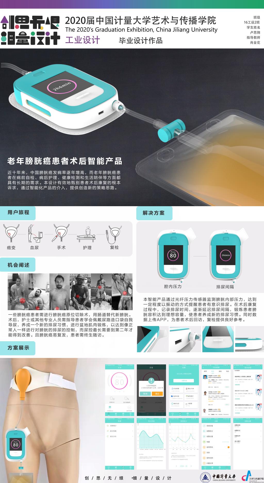 创作理念:近十年来,中国膀胱癌发病率逐年增高,而老年膀胱癌患者在病前自检、病后护理、健康检测和生活陪伴等方面都具有长期的需求。本设计有效地甄别患者术后康复的根本诉求,通过智能化产品的介入,提供创造新的策略思路。